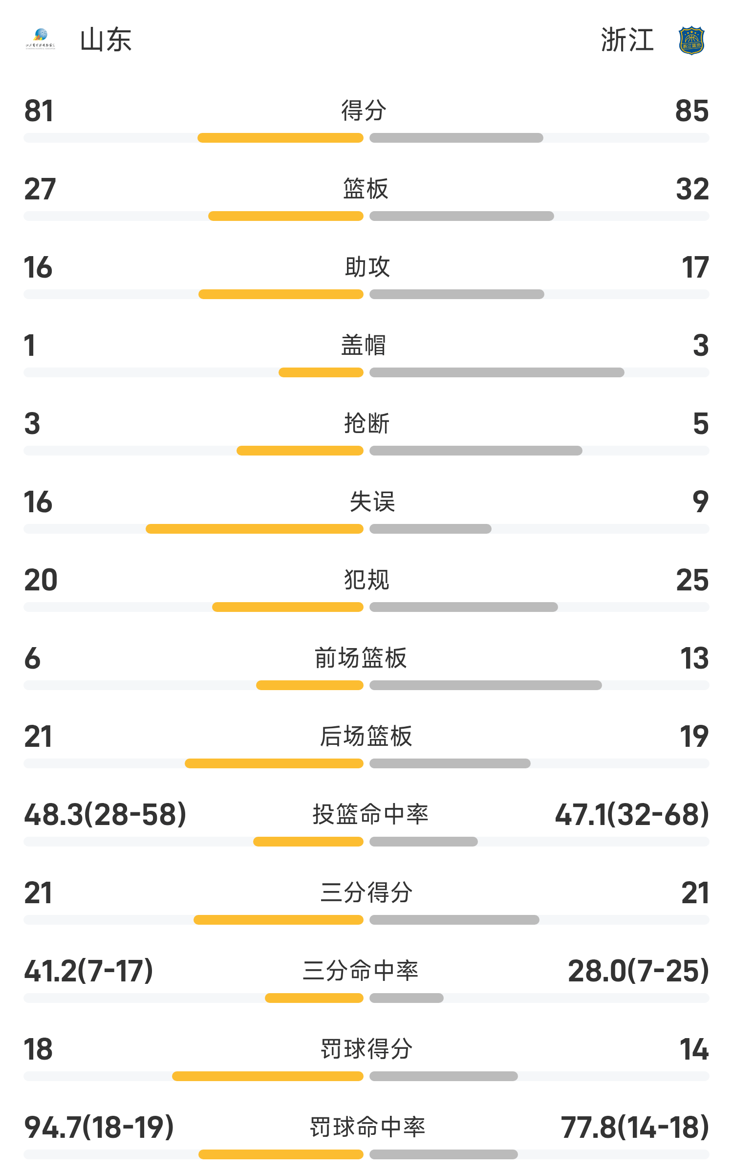 全运男篮战报:余嘉豪18分9板,浙江85-81险胜山东