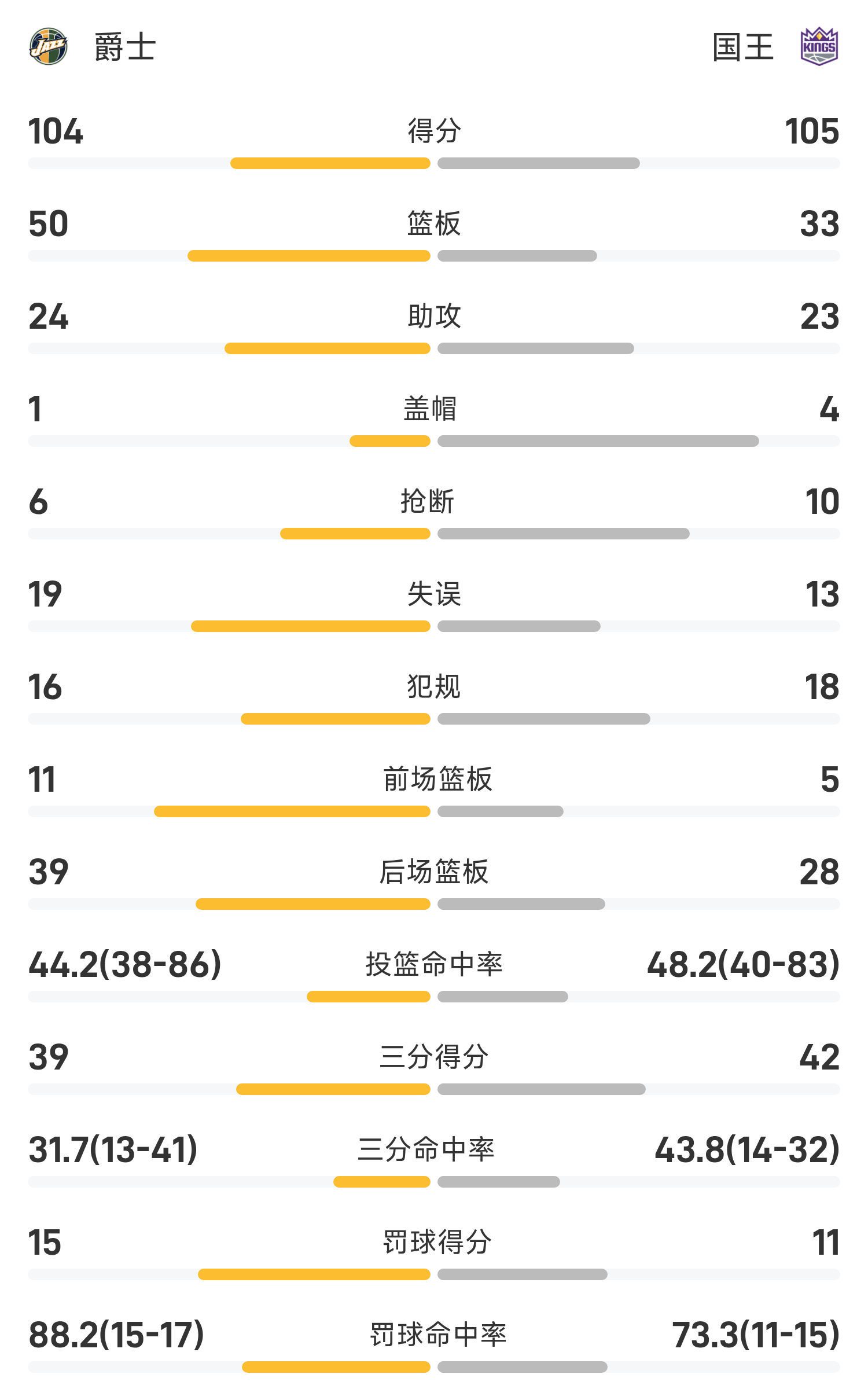 6686体育app10月25日讯 25/26赛季NBA 常规赛,国王对阵爵士。双方全场战罢,国王105-104战胜爵士。拉文得到31分2板1助率队取胜,马尔卡宁空砍全场最高的33分4板1助。