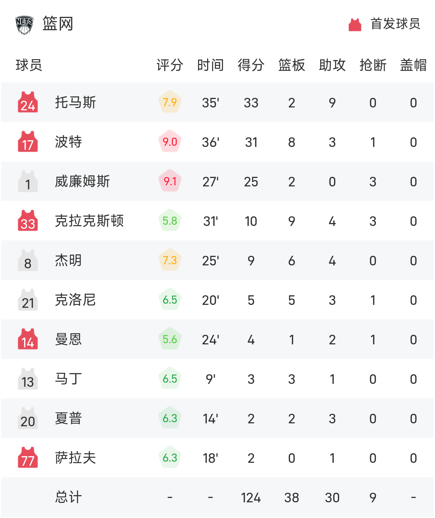 球员数据 查看更多