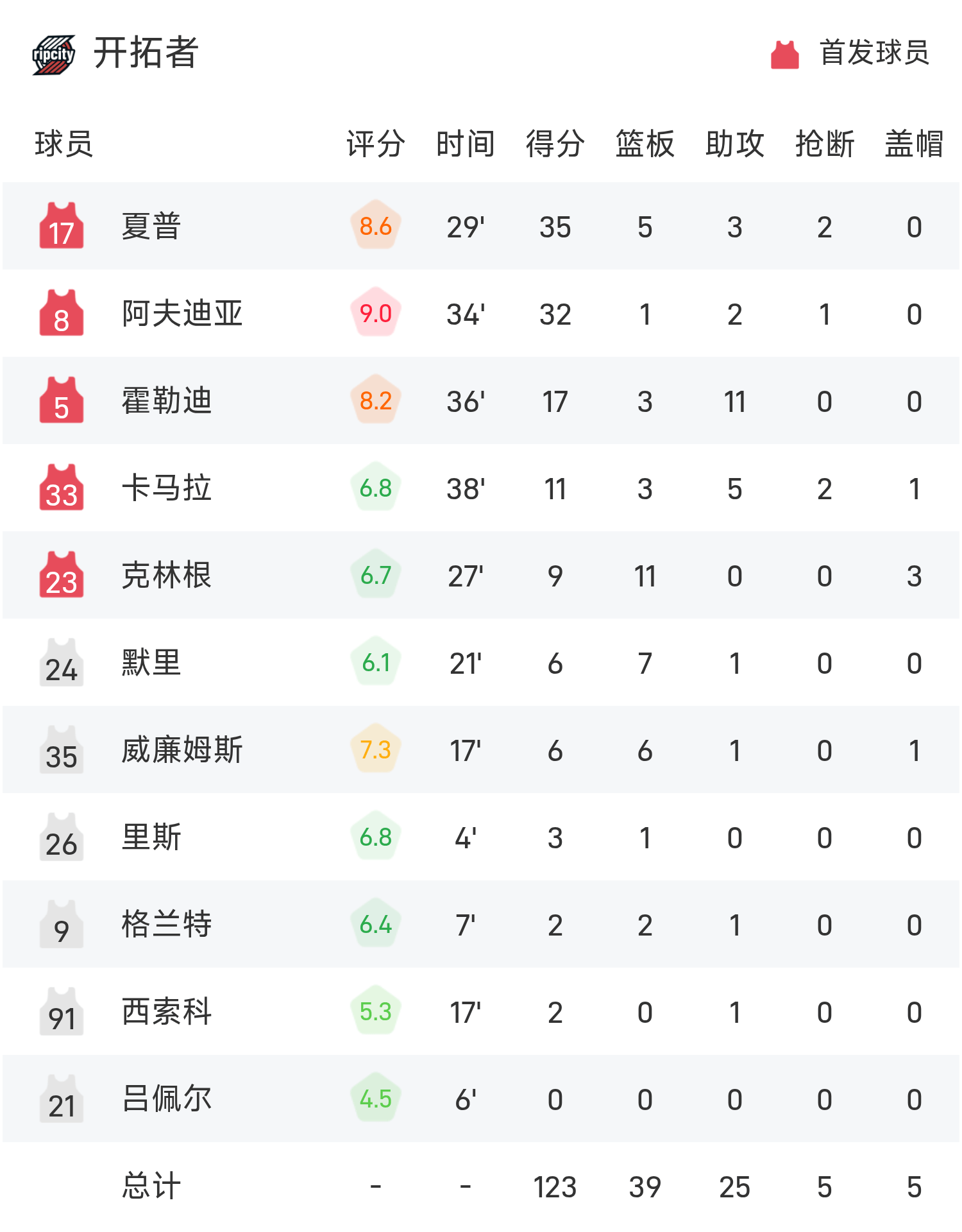 6686体育app11月13日讯 25/26赛季NBA 常规赛,鹈鹕对阵开拓者。双方全场战罢,鹈鹕117-125不敌开拓者。夏普砍下全场最高的35分5板3助,率领开拓者胜利取胜。
