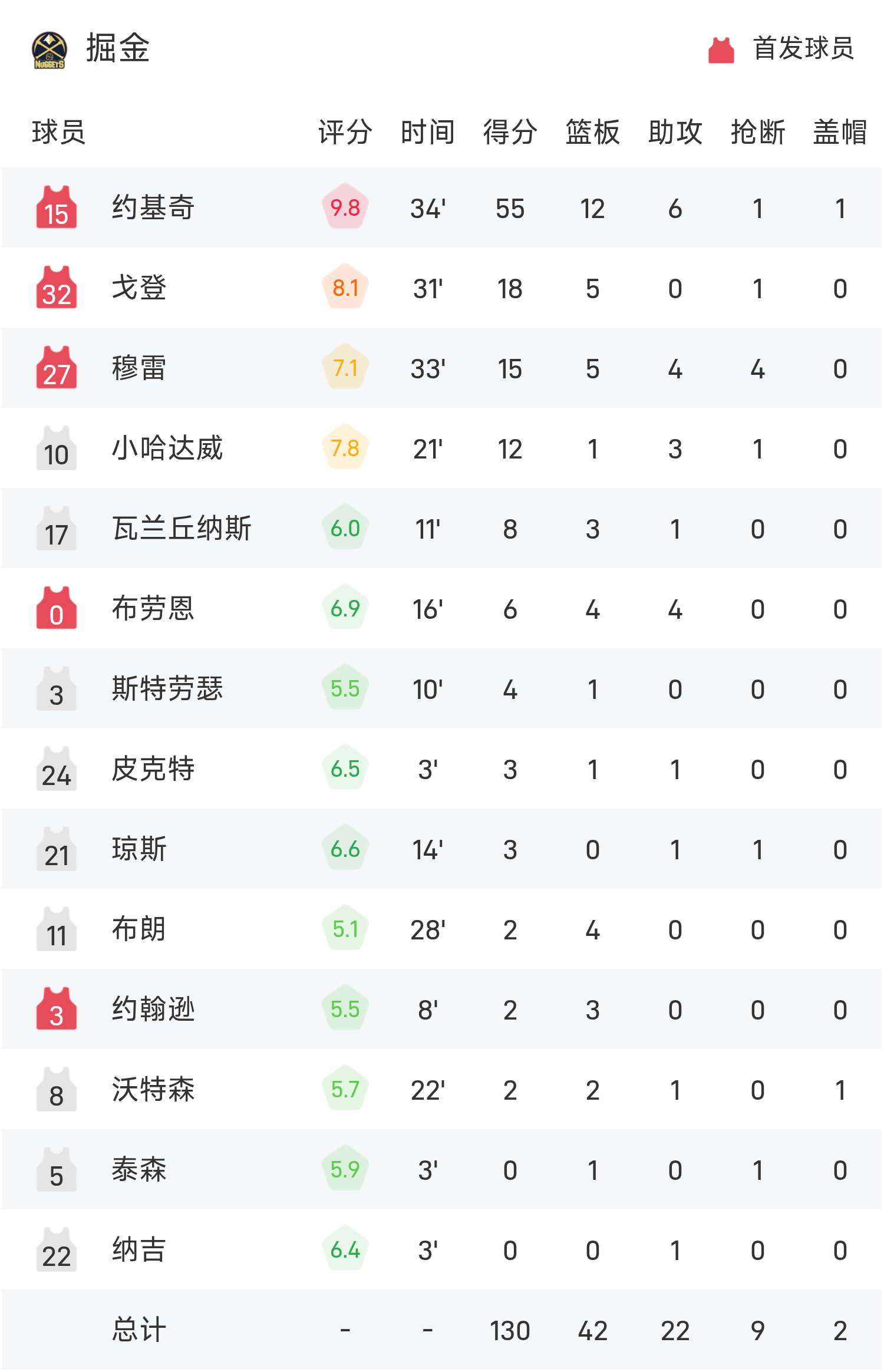 NBA战报:约基奇55分12板6助,掘金130-116击败快船