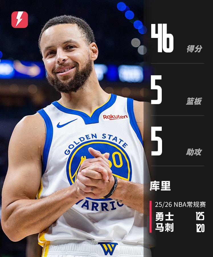 46分也是库里本赛季单场得分新高。