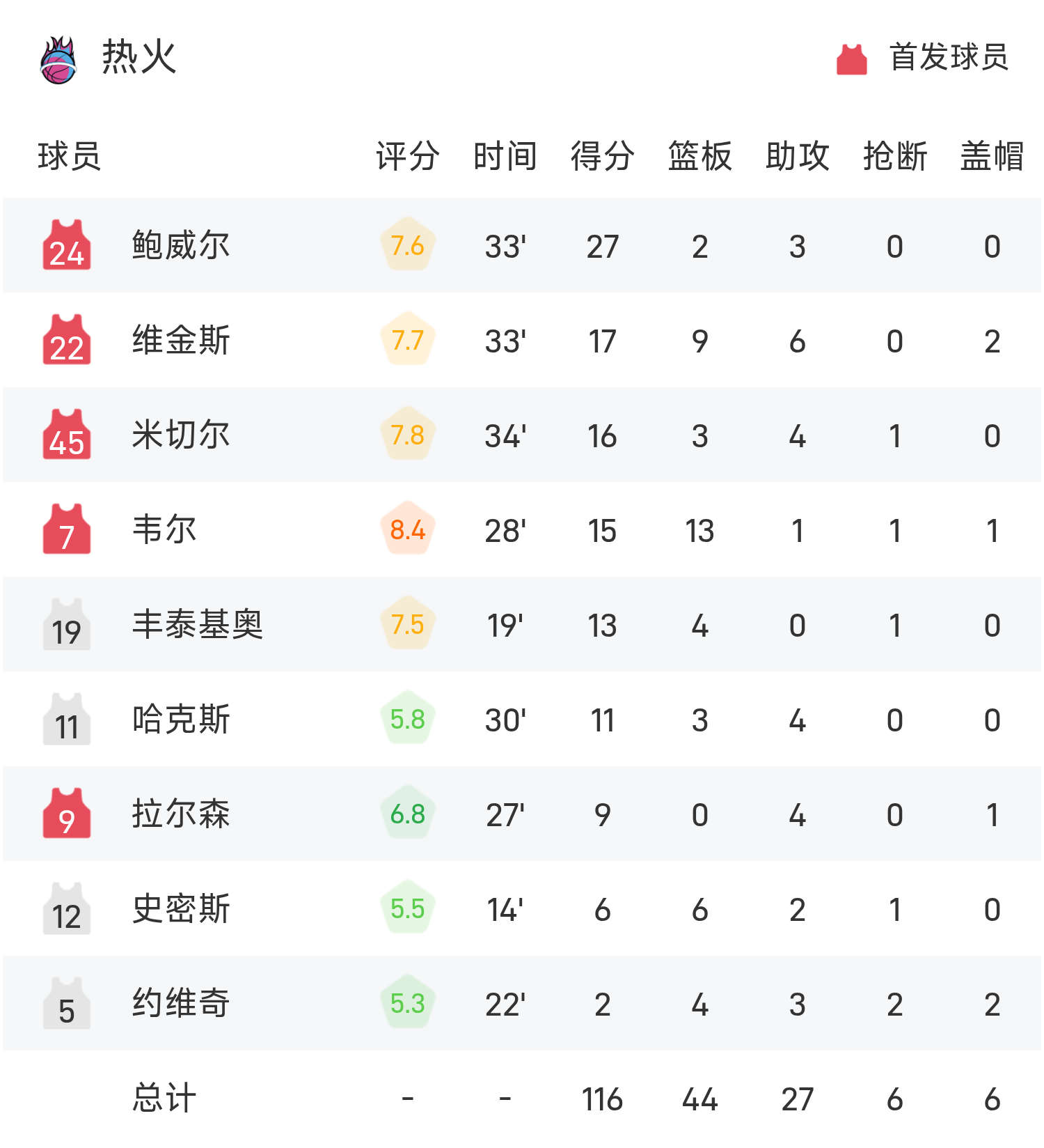球员的表现非常亮眼,超出预期