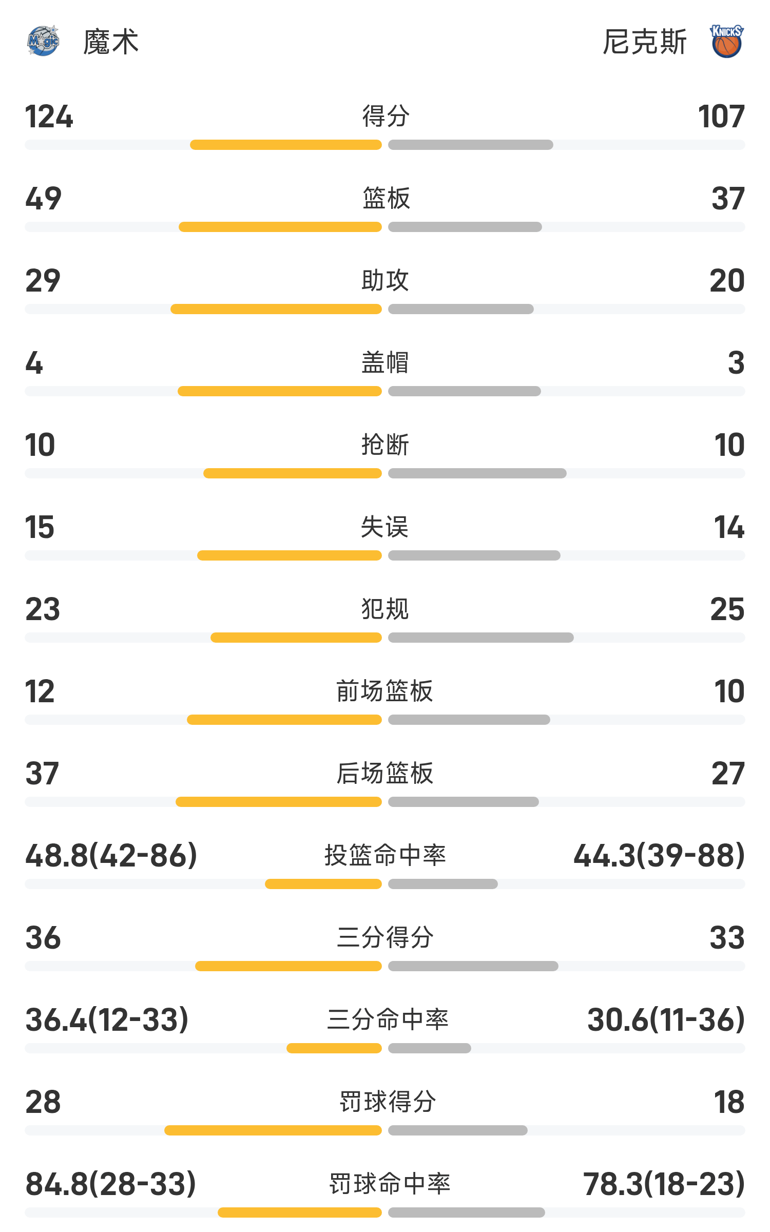 NBA战报:瓦格纳28分9板,魔术124-107轻取尼克斯
