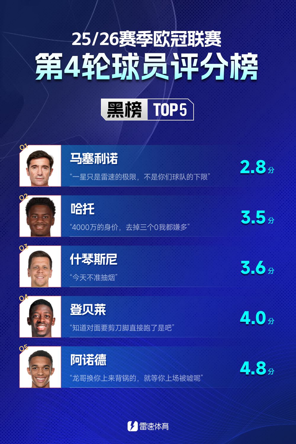 切尔西后卫哈托则两度送礼,让切尔西在阿塞拜疆球队身上只带回1分;什琴斯尼的处境也有些相似,全场无所发挥的情况下,还差点送给对手一个最后一投球,二人双双进入黑榜。
