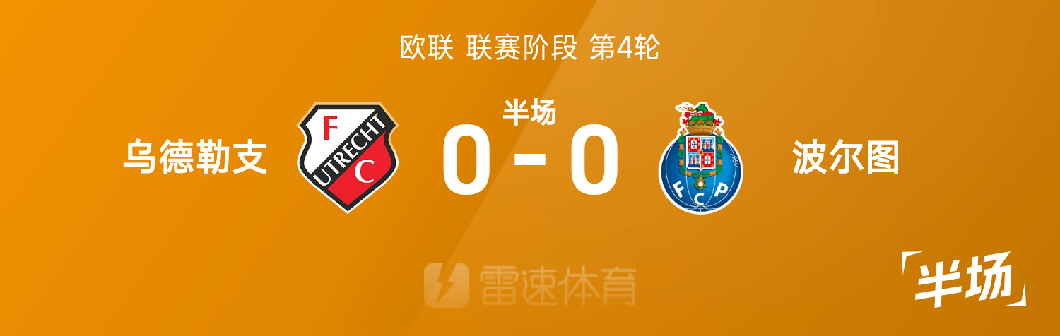 欧联半场:场上僵局暂未打破,乌德勒支0-0波尔图