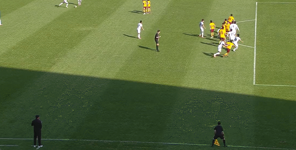 32’崔奎贤门前接应自由球传禁区凌空垫射破门,但越位在先进球无效