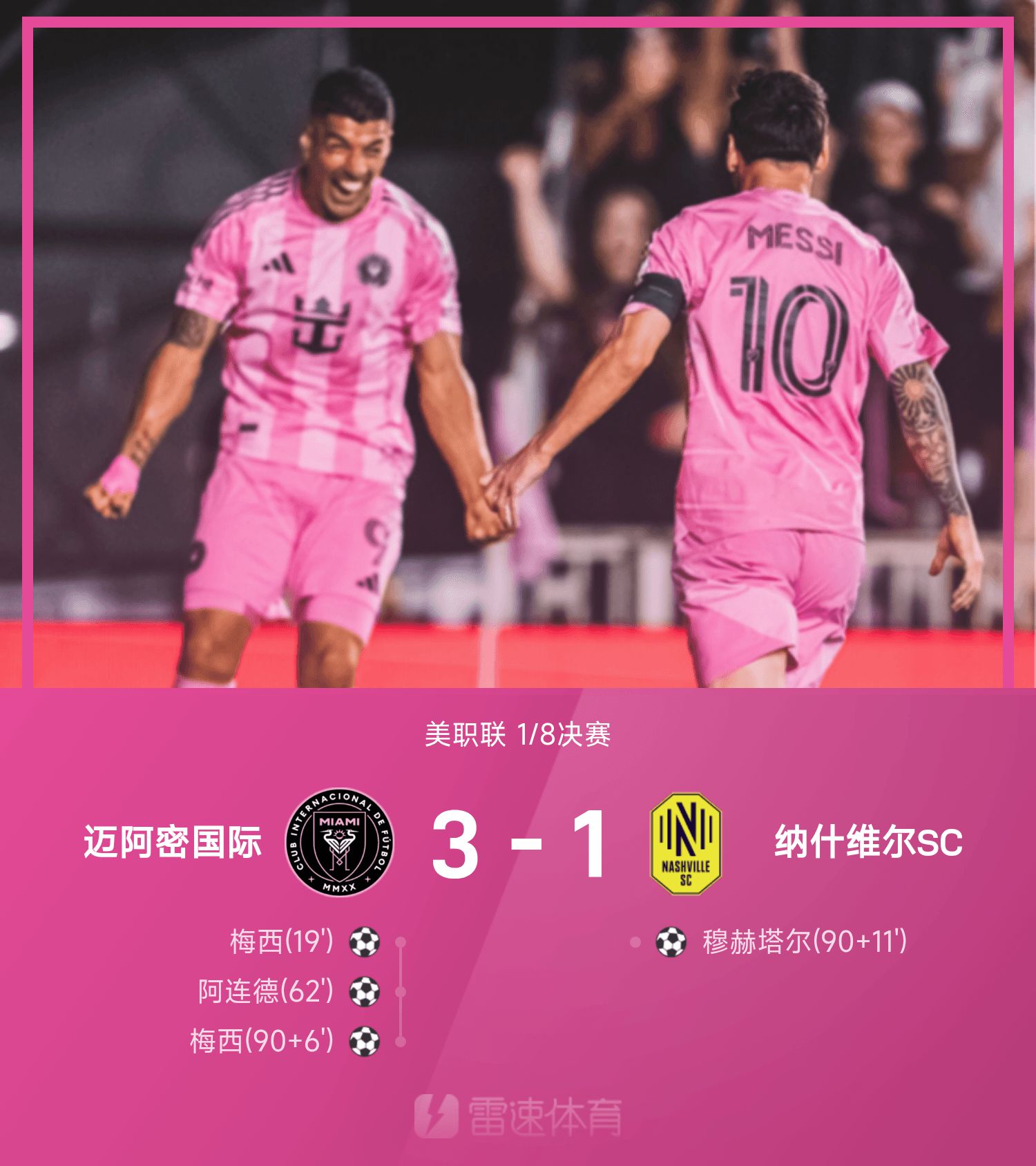 美职战报:梅西双响,阿连德破门,迈阿密国际3-1纳什维尔