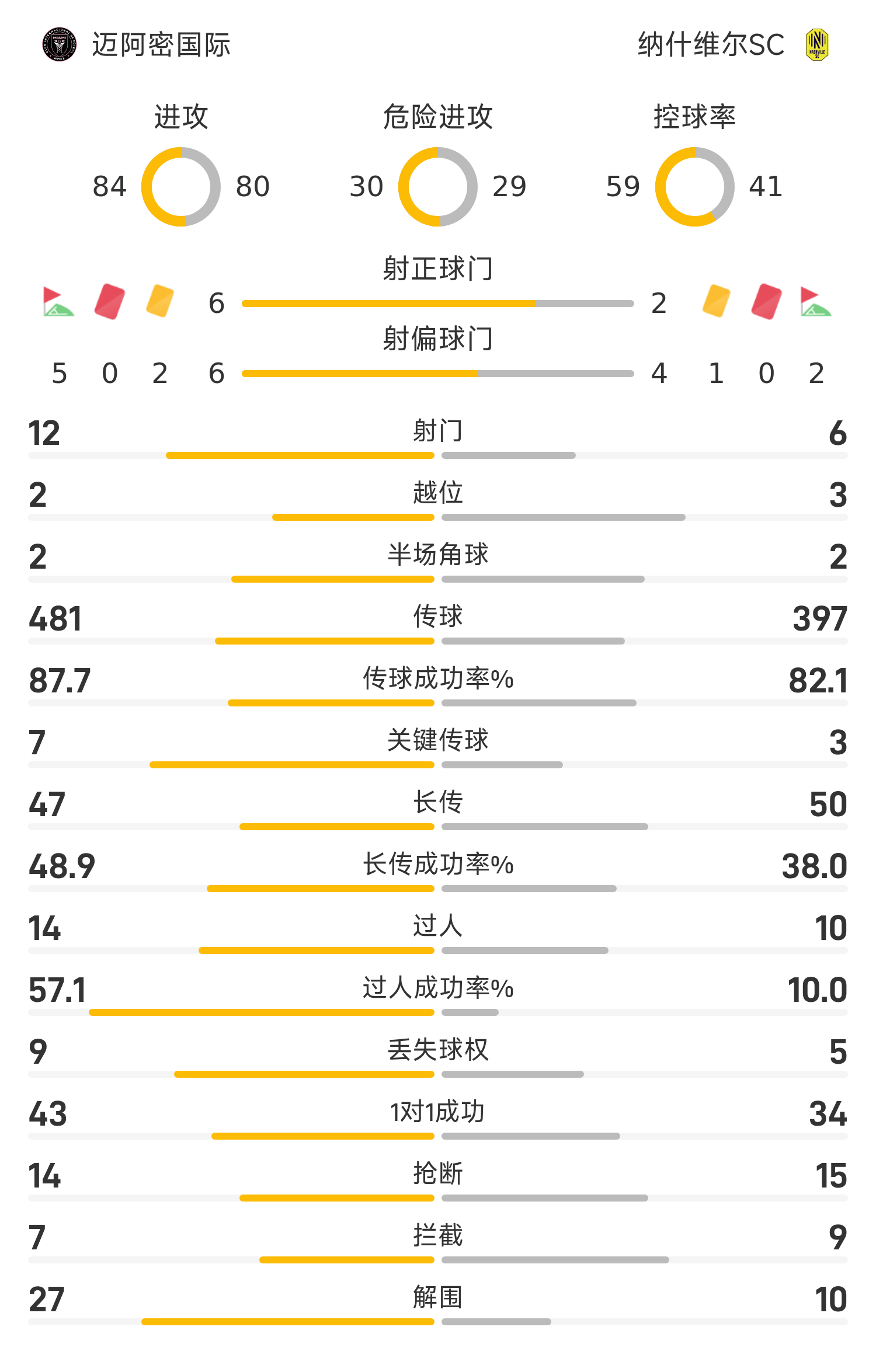 迈阿密国际首发阵容:34-诺沃、18-阿尔巴、37-法尔肯、17-弗雷(89’2-卢扬)、32-艾伦、5-布斯克茨、7-德保罗(89’42-布莱特)、21-阿连德(77’24-西尔维蒂)、11-罗德里格斯(70’8-塞戈维亚)、10-梅西、9-苏亚雷斯