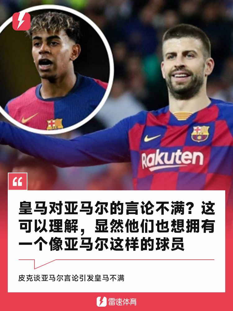 6686体育app10月25日讯 在本周末西班牙国家德比前,亚马尔在参加某档节目时讽刺皇马“偷窃、抱怨、搞小动作”,这引发了极大争议和皇马方面的不满。对此,巴萨名宿皮克表示,皇马方面批评亚马尔的言论是可以理解的,显然他们也想拥有亚马尔这样的球员。