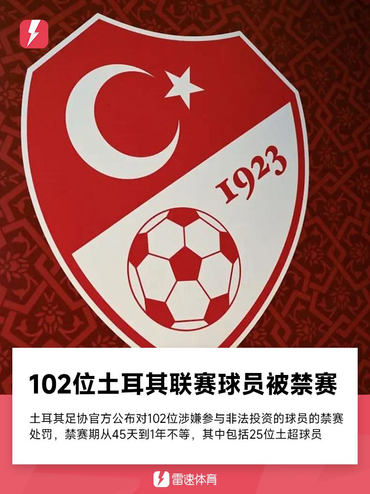 土耳其足协:102位参与非法投资的球员被禁赛,其中土超25人