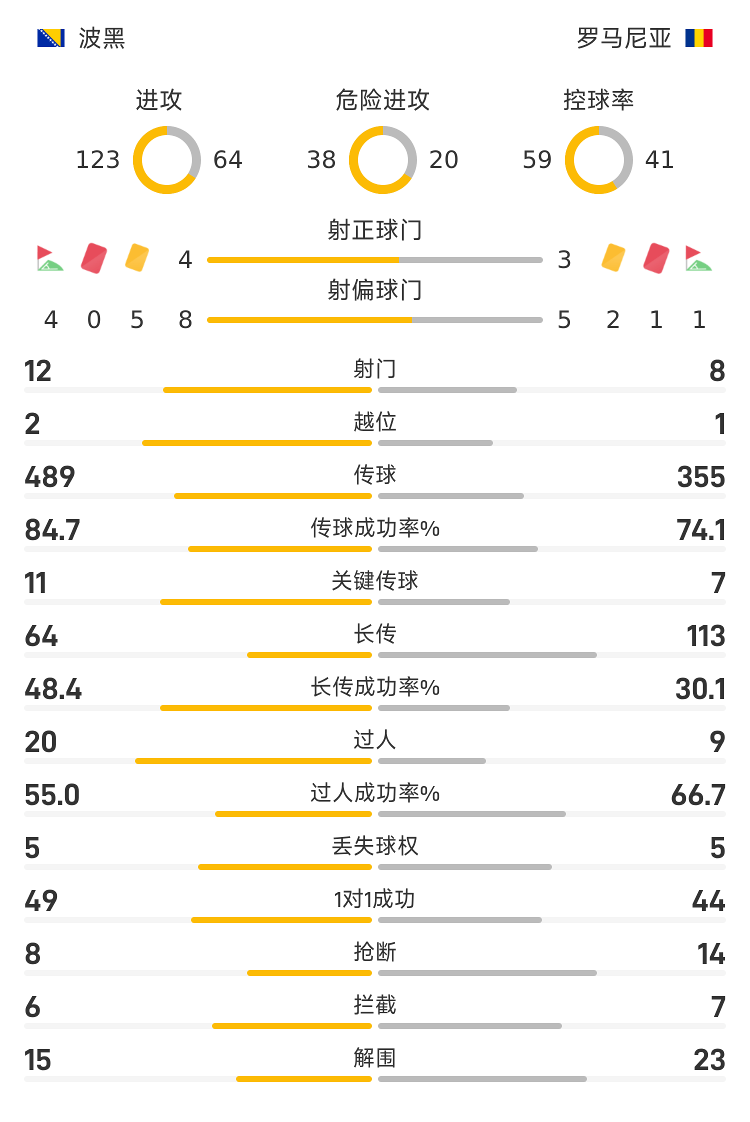 波黑首发阵容:1-瓦西尔吉、18-卡蒂奇、7-德迪奇、4-穆哈雷莫维奇、23-马利克(46’21-阿拉杰贝戈维奇)、17-布鲁诺(70’13-巴希奇)、15-梅米奇、6-塔希罗维奇(83’16-哈德齐亚梅托维奇)、9-巴兹达(46’10-塔巴科维奇)、20-巴伊拉塔雷维奇、11-哲科(90’8-吉戈维奇)