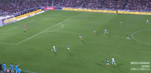 35’阿尔瓦拉多直传球,希门尼斯转身运球扫射没有力量未形成威胁