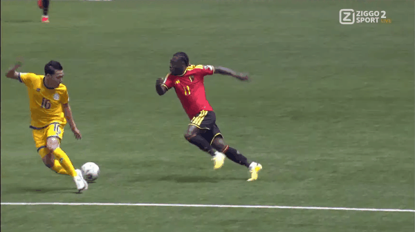 27’比利时前场撞墙协作,范纳肯弧顶抽射攻门未能发上力量