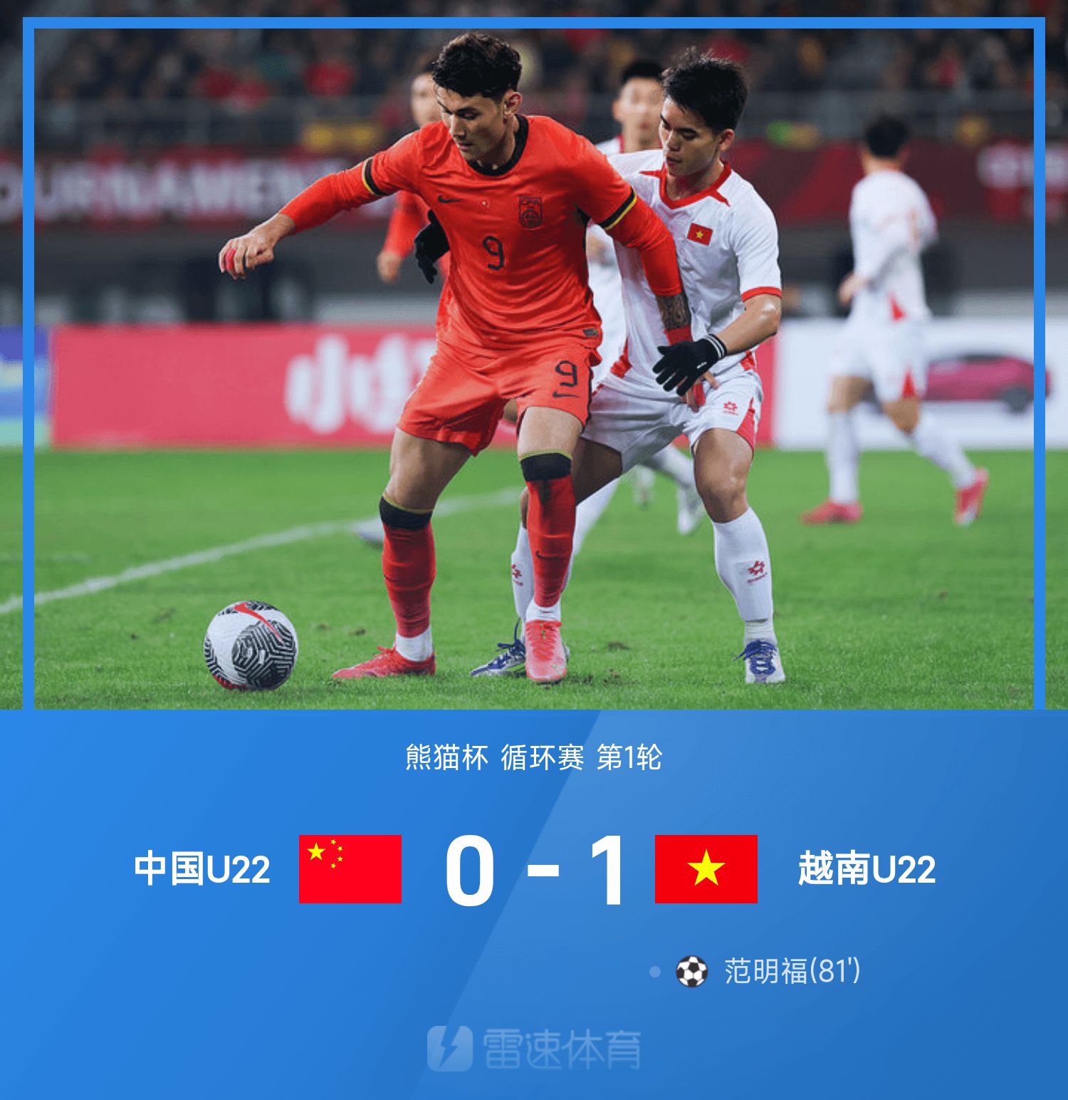 熊猫杯战报:后卫连续差错送礼,U22国足0-1越南开门黑